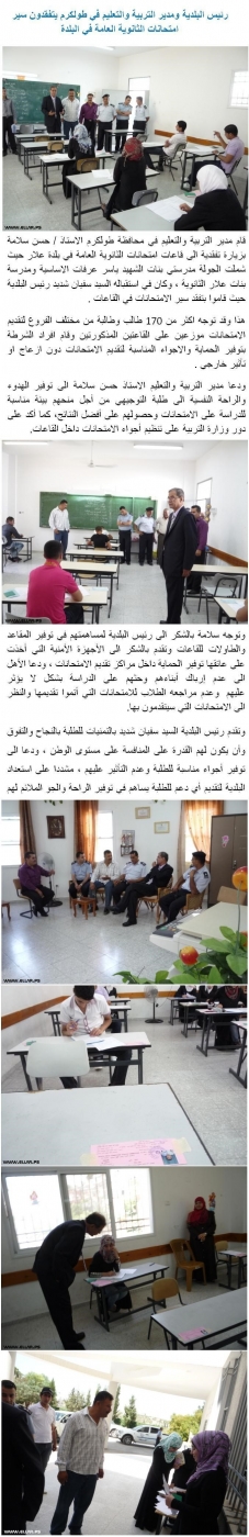 رئيس البلدية ومدير التربية والتعليم في طولكرم يتفقدون سير امتحانات الثانوية العامة في البلدة