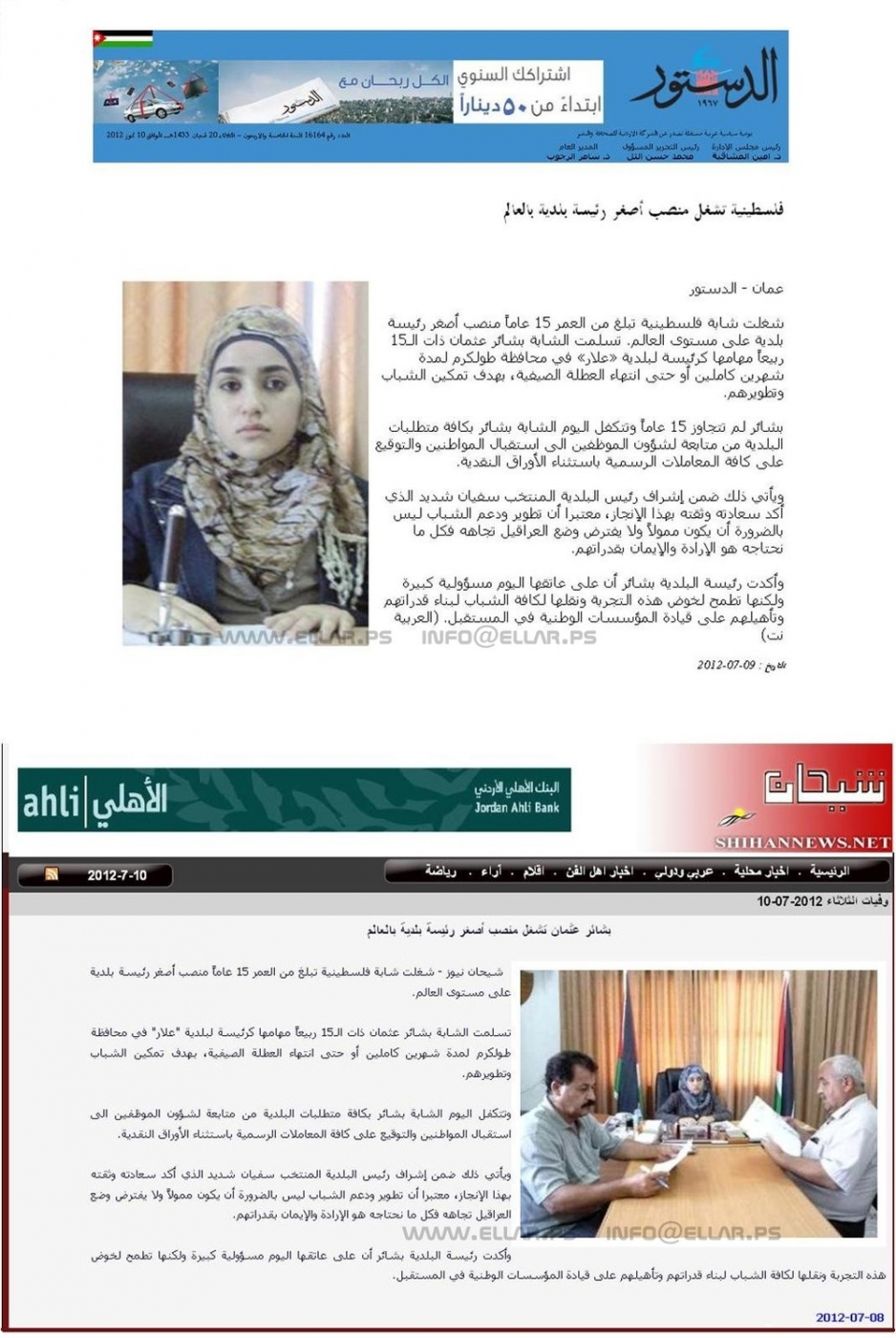 صحف الاردن تتحدث عن اصغر رئيسة بلدية بالعالم