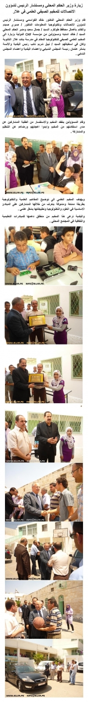 زيارة وزير الحكم المحلي ومستشار الرئيس لشؤون الاتصالات للمخيم الصيفي العلمي في علار