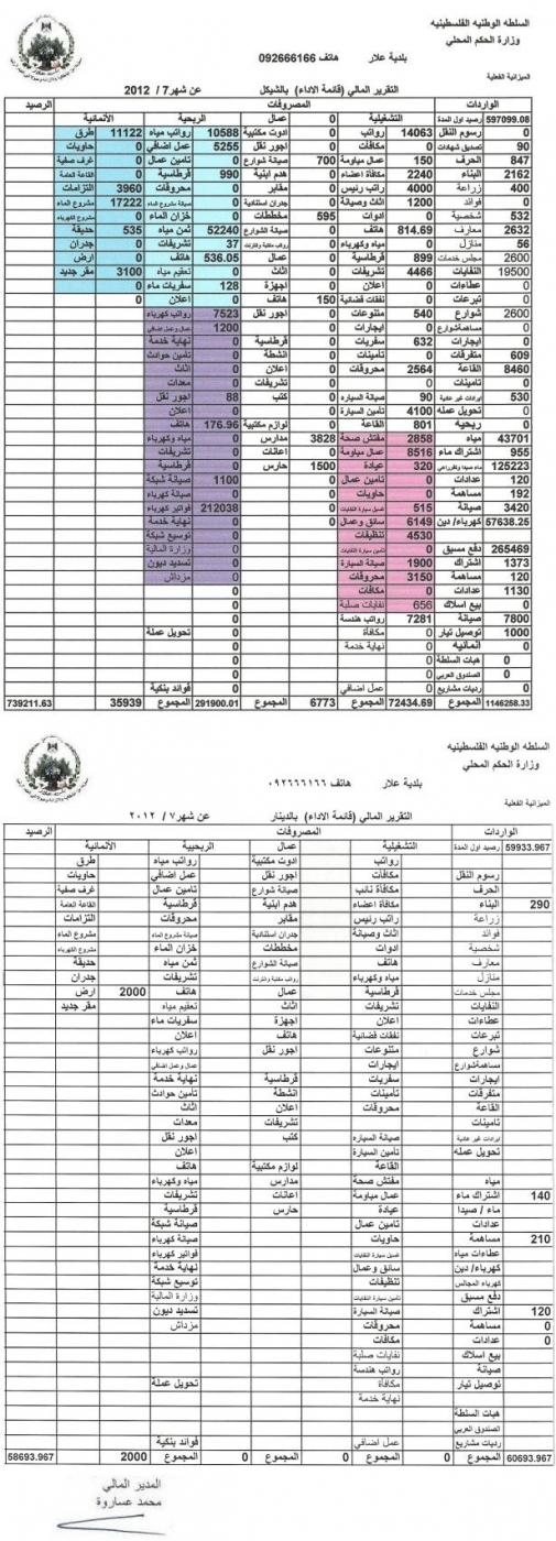 التقرير المالي عن شهر 7/2012 قائمة الاداء