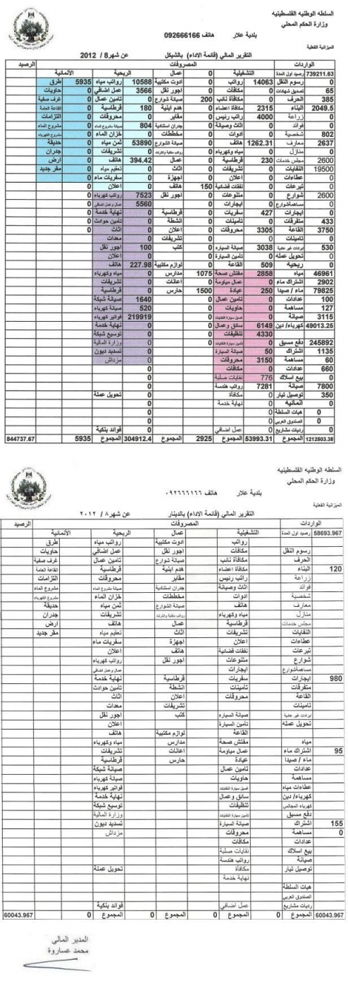 التقرير المالي عن شهر 8/2012 قائمة الاداء