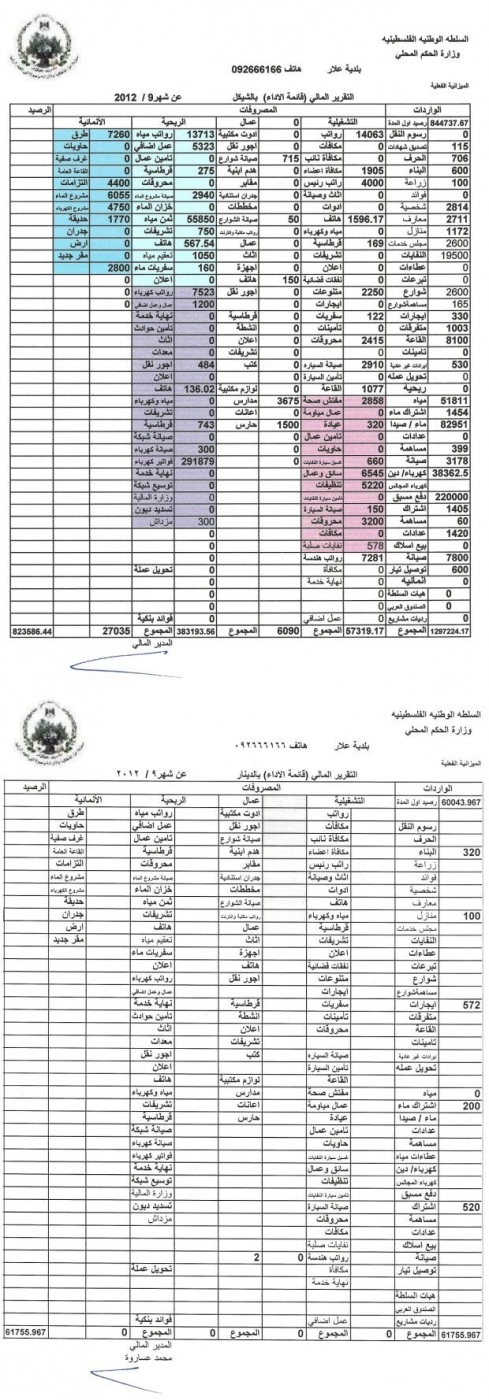 التقرير المالي لشهر 9/2012