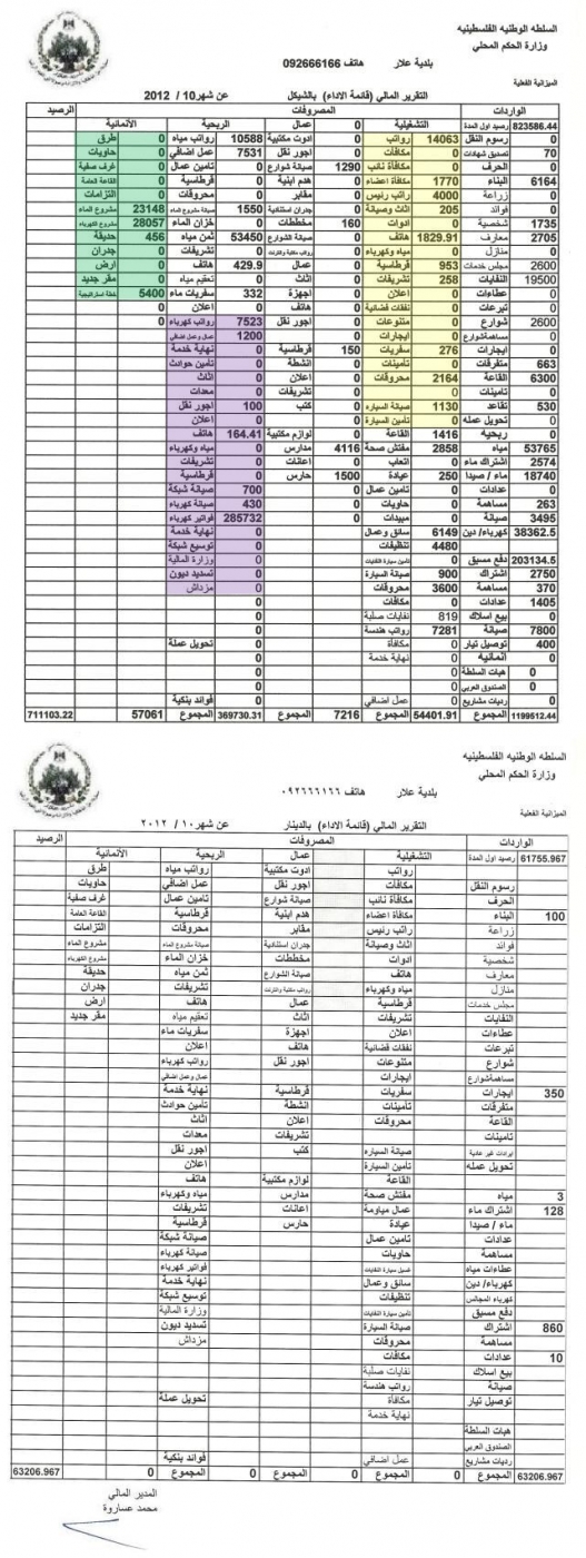 التقرير المالي لشهر 10/2012