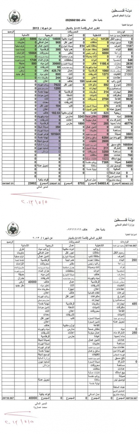 تقرير ديوان الرقابة المالية والادارية حول اداء بلدية علار