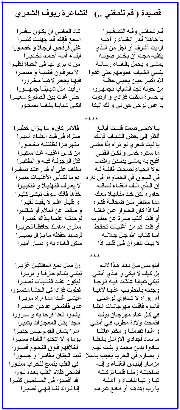 قصيدة قم للمغني للشاعرة ريوف الشمري