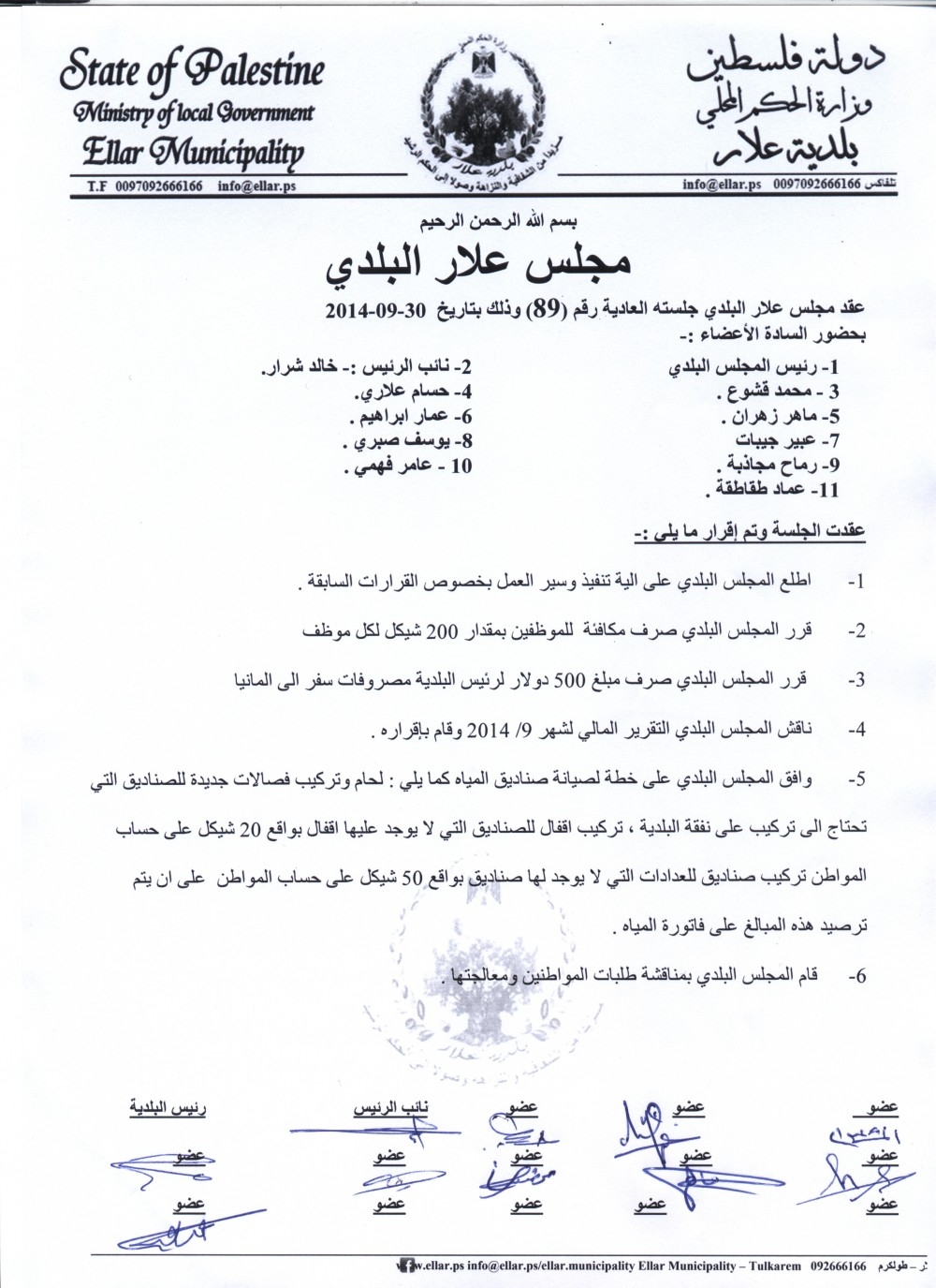 بلدية علار » المحتوى » قرارات المجلس البلدي