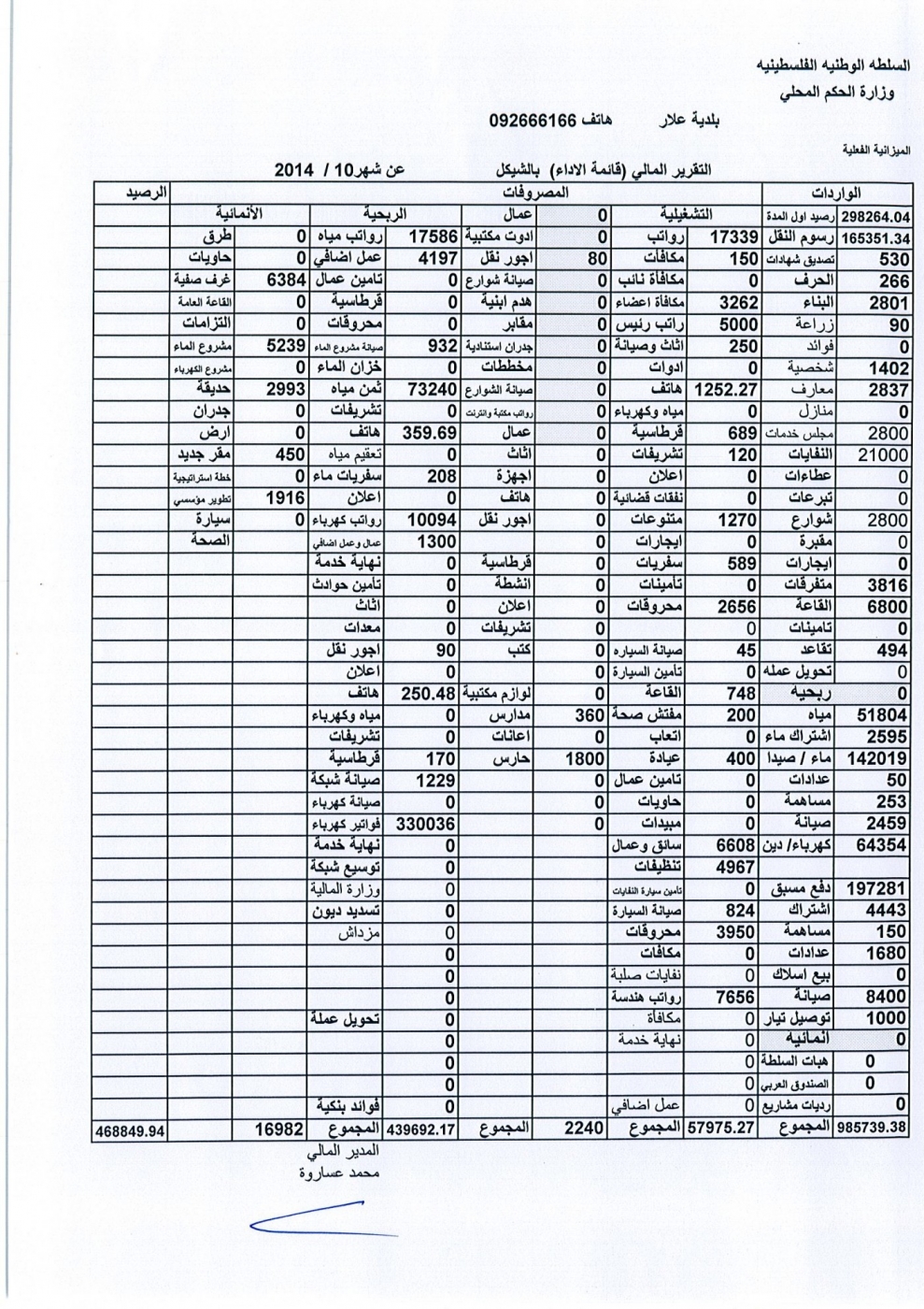 تقرير ديوان الرقابة المالية والادارية حول اداء بلدية علار