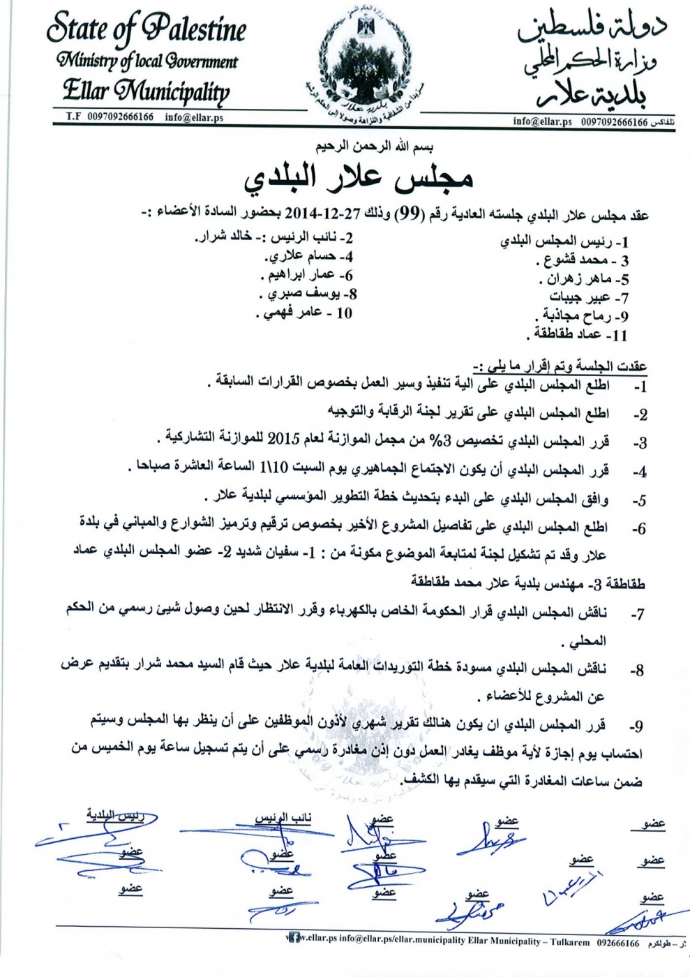 بلدية علار » المحتوى » قرارات المجلس البلدي