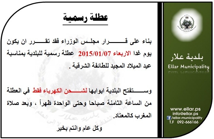 © 2026 جميع الحقوق محفوظة لـ موقع بلدية علار الالكتروني