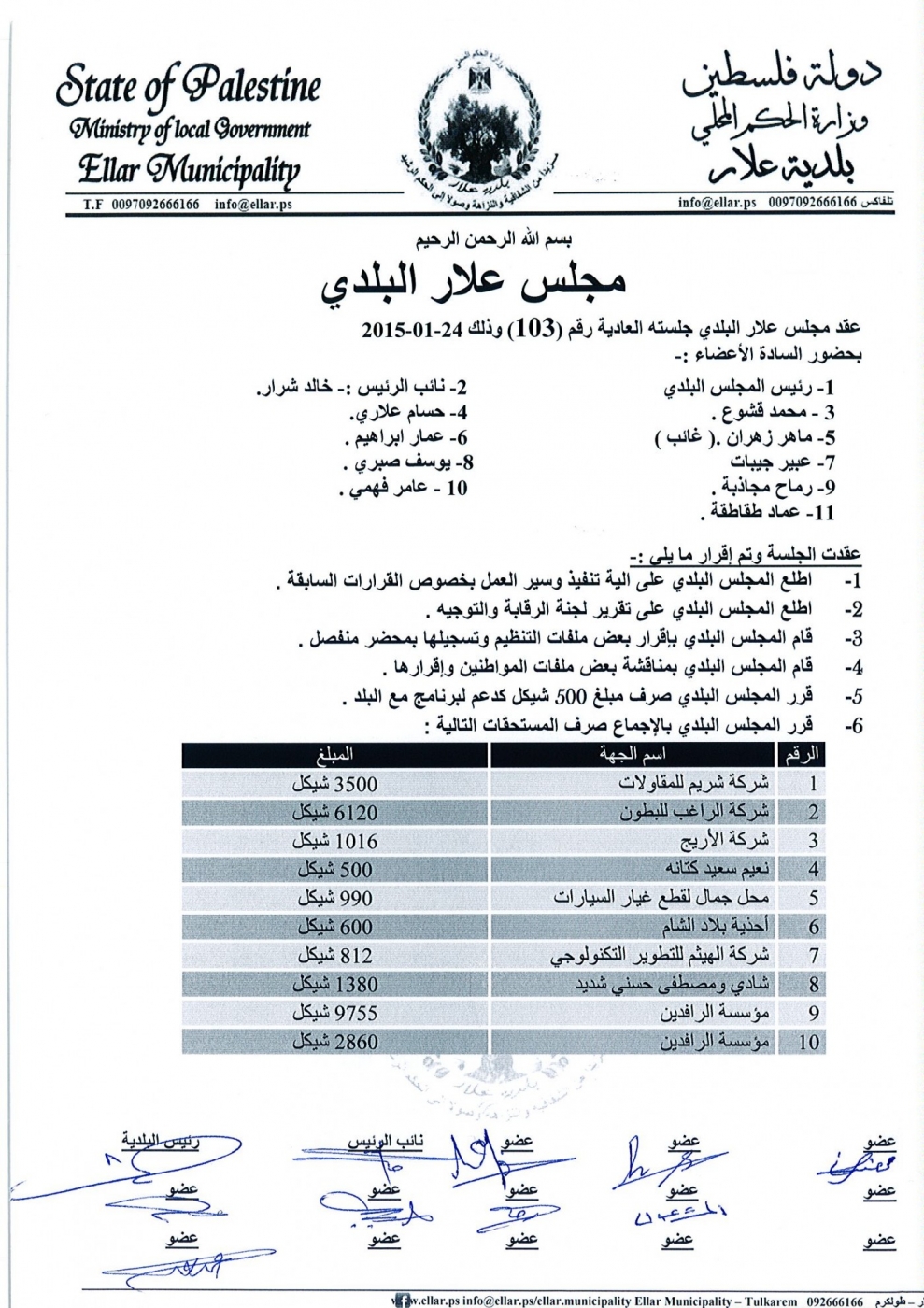 بلدية علار » المحتوى » قرارات المجلس البلدي