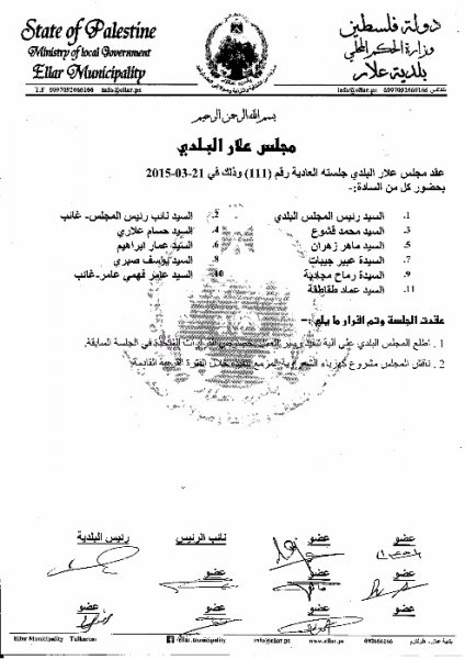 جلسة المجلس البلدي رقم 111 بتاريخ 21/03/2015