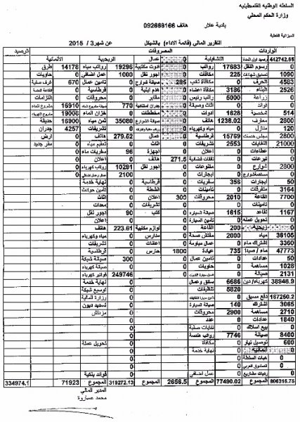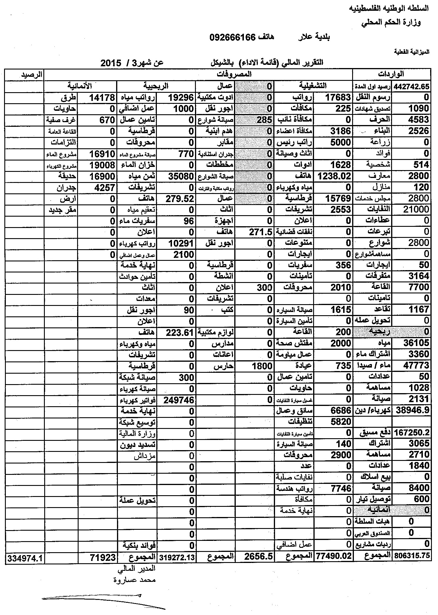 التقرير المالي عن شهر 3/2015 (شيكل ، دينار)