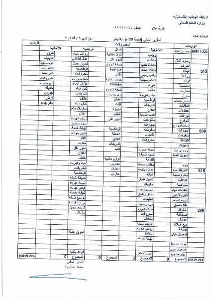 تقرير ديوان الرقابة المالية والادارية حول اداء بلدية علار