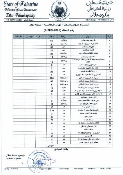 عطاء توريد قرطاسية لبلدية علار