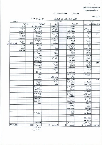 تقرير ديوان الرقابة المالية والادارية حول اداء بلدية علار