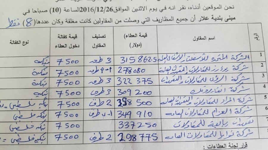 يذكر ان عدد المتقدمين للعطاء كان 8 شركات من ضمن الشركات العاملة في هذا المجال .