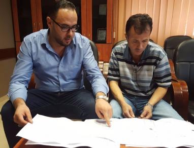 الان أثناء تجهيز المخططات اللازمة لمشروع بناء قاعة الاستاذ المرحوم حمزة ابو حفيظة في حارة الحفايظة بحضور المهندس فتحي ابو سعدة رئيس بلدية علار و عضو المجلس البلدي السيد مطيع ابو حفيظة .