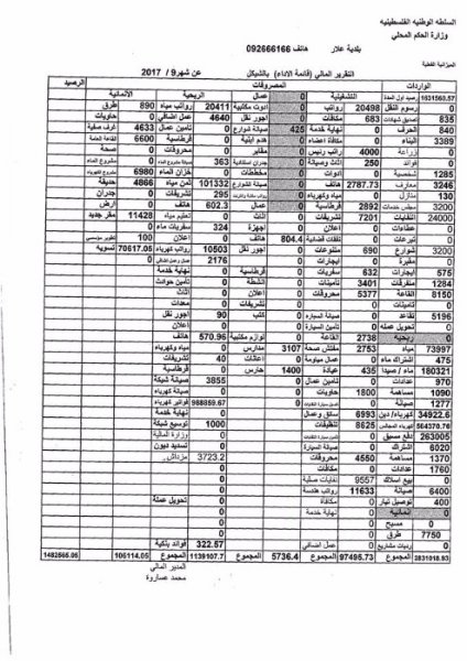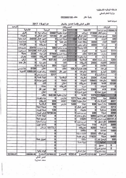 تقرير ديوان الرقابة المالية والادارية حول اداء بلدية علار