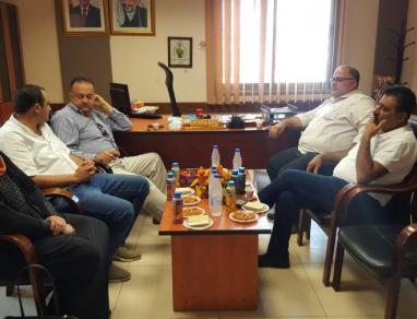 اليوم اثناء زيارة السيد نشات دقة رئيس بلدية عتيل والسيد عبد الرحيم جانم رئيس بلدية باقة الشرقية والسيد مهند مصاروة رئيس بلدية زيتا لبلدية علار وذلك لتهنئته المجلس البلدي الجديد باستلام مهامه .
