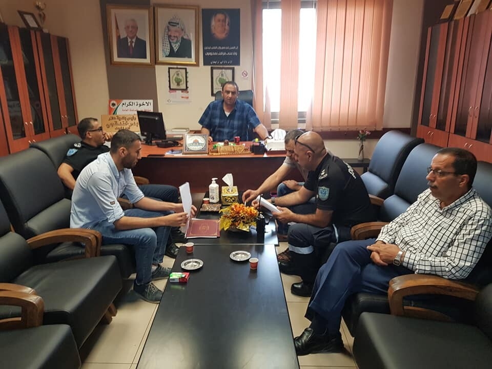 عقد اليوم في بلدية علار اجتماع مع الاخوة في مركز شرطة علار بهدف وضع الية ثابته لتنفيذ قوانين وانظمة أذون الصب في البلدة.