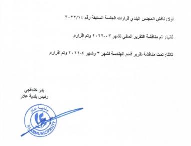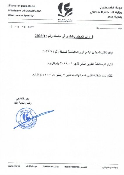 قرارات المجلس البلدي في جلسته رقم 15/2022