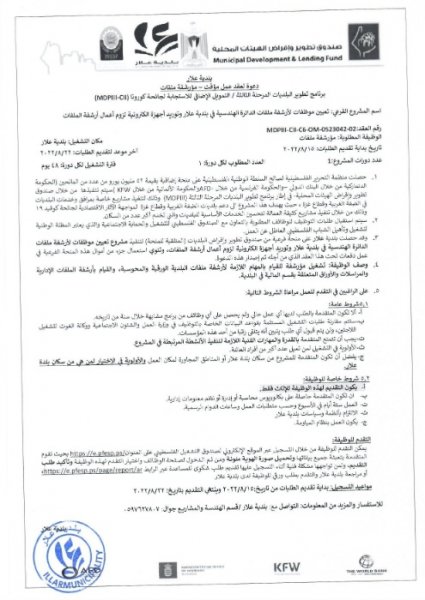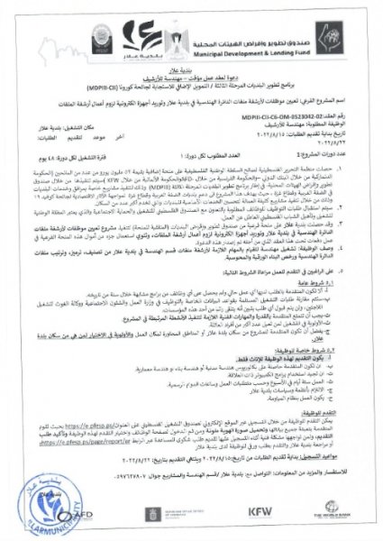 حصلت بلدية علار على منحة تشغيل مؤقت لعدد من الموظفات في ارشفة ملفات قسم الهندسة في بلدية علار .